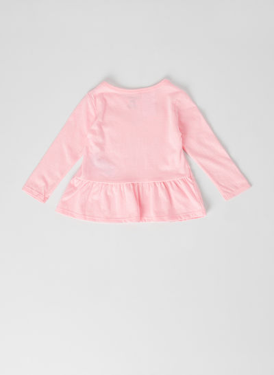 عروض بلوزة للأطفال من نوع بيبلم (تصميم لقَصة بقسم قصير يتصل بخصر البلوزة) بتصميم تفاعلي يضج بالحيوية والنشاط على شكل فراشة الوردي المشرق - الامارات العربية