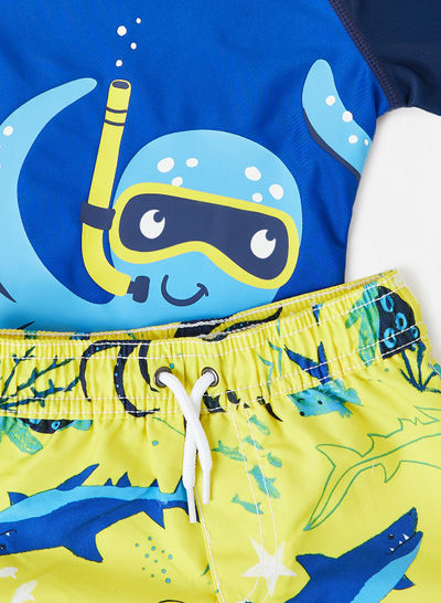 لمعلومات اكثر عن طقم تي شيرت بطبعة بكم قصير مع شورت